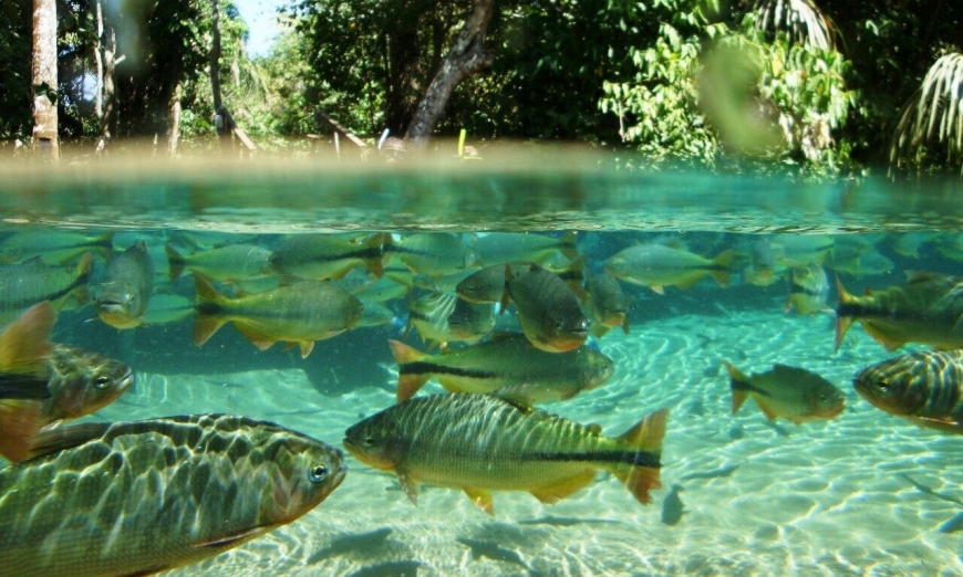 Meeting in the morning at either airport (CGB) or hotel in Cuiabá city and transfer to Bom Jardim. Arrival at our lodge around midday. After lunch we go snorkeling downstream in the crystalline Salobra river with hundreds of fresh water fish. By the late afternoon, we'll visit the Macaw’s lake to watch and photograph the Blue-and-yellow Macaws, Red-bellied Macaws, and many other birds that come together for the night. They fly over the buriti tress at sunset, creating an amazing nature spectacle. (L,D)