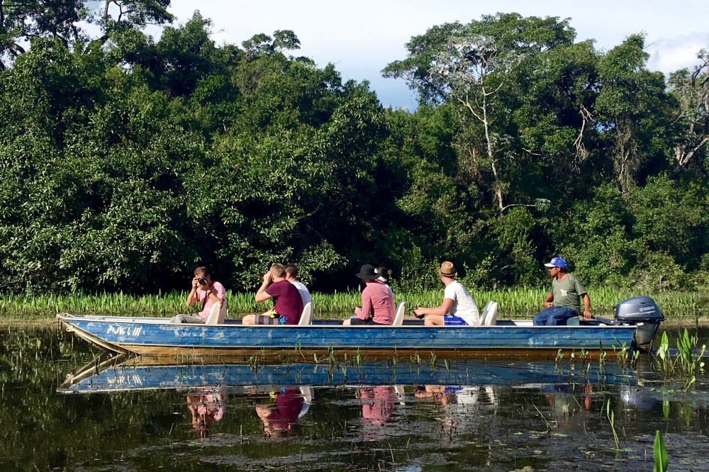 Viaje de barco através dos sinuosos rios do Pantanal para observar a flora e fauna que habitam esse magnífico ecossistema. Chances para ver jacarés...
