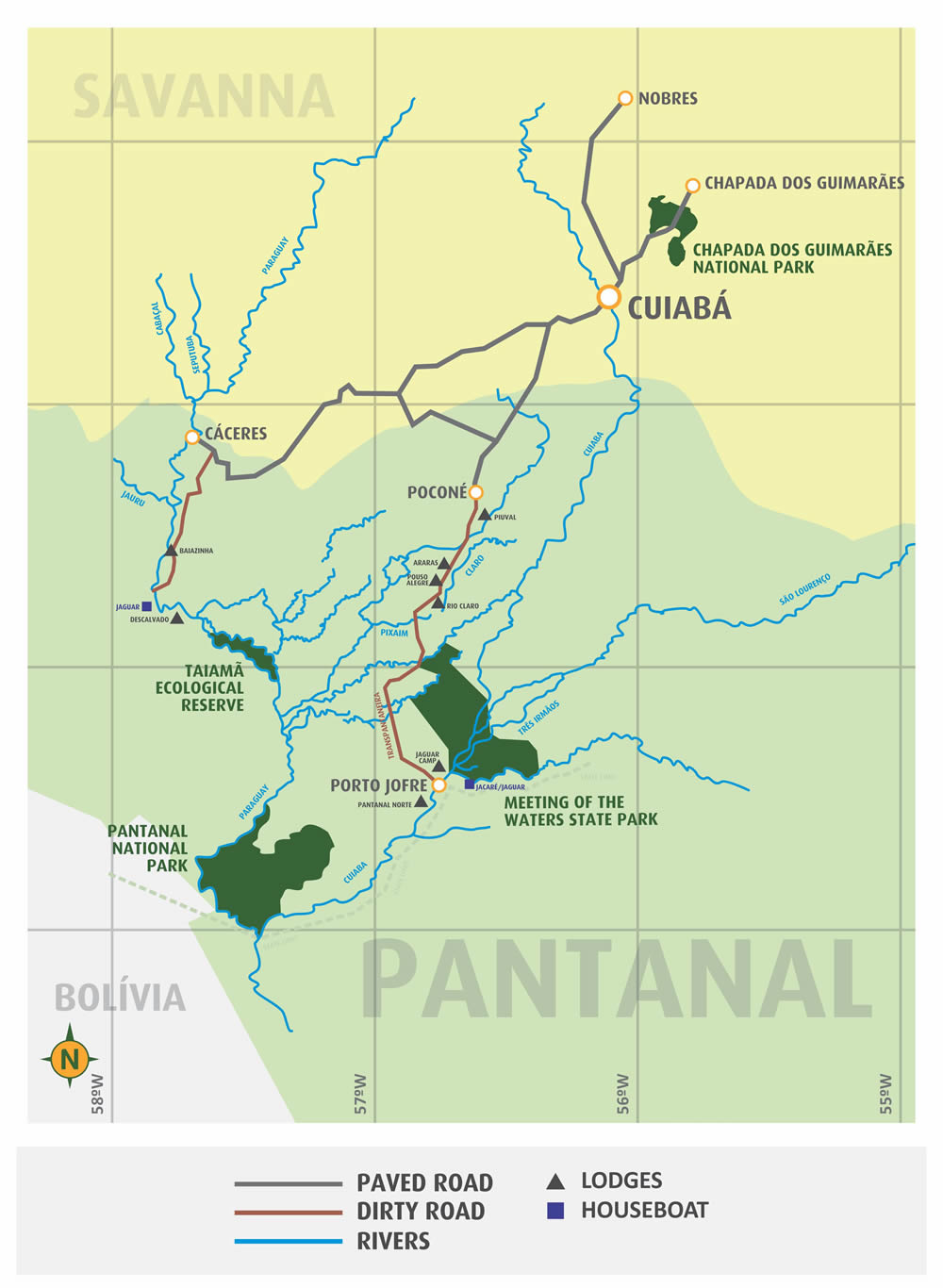 Once your itinerary is settled, an payment invoice will be sent to you, with the booking instructions. Reservations are made under 50% credit card down payment (non-refundable), and the balance of total amount should be paid by credit card 30 days prior to arrival, or cash (USD/BRL) at the beginning of the tour in Cuiabá.